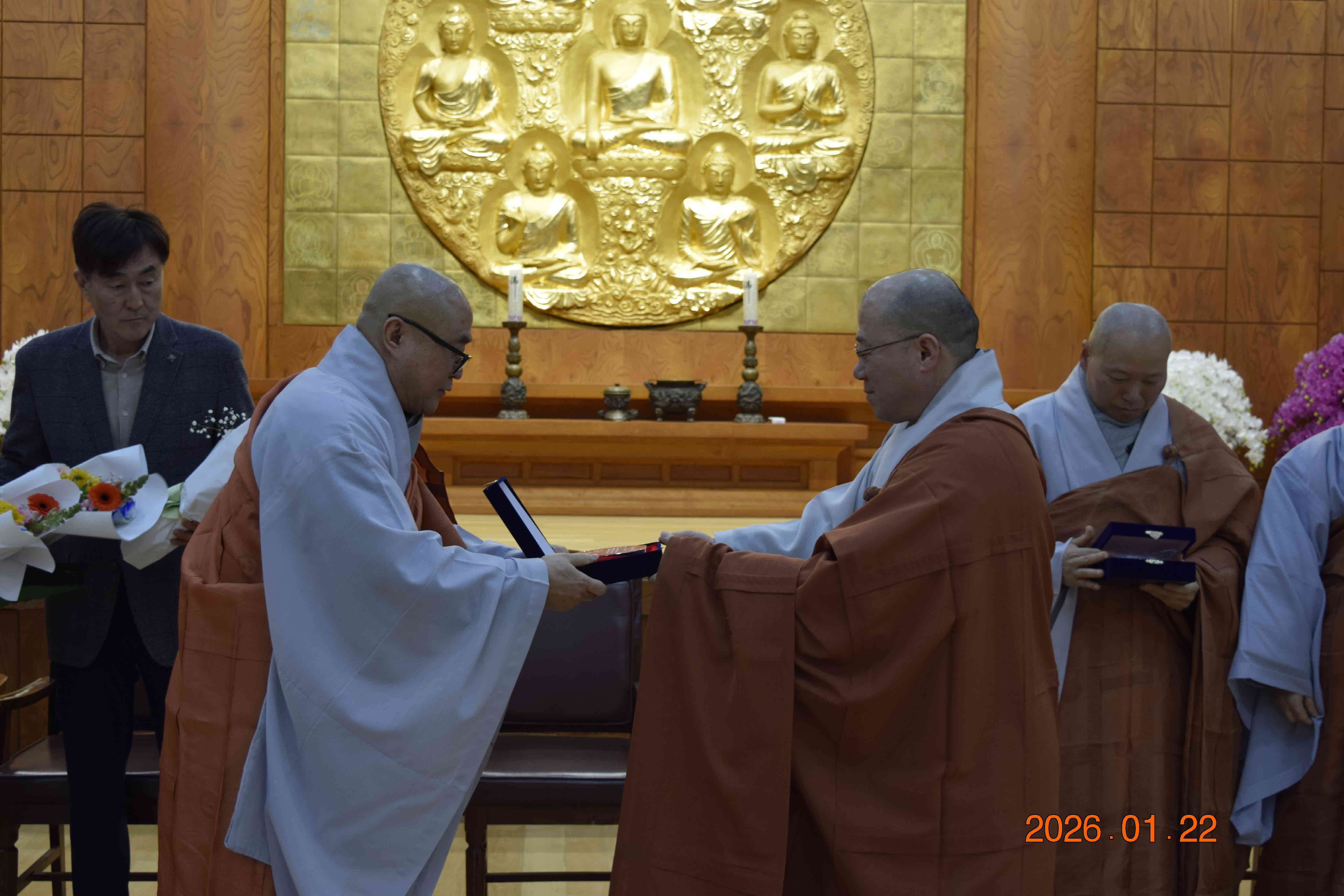 제81회본.말사주지회의및제44회교구종회(1.22) - 25년 말사종무행정지도감사 표창 페이지 정보 작성자 직지사 작성일26-02-08 15:51 조회27회 댓글0건 본문 2025년 말사종무행정지도감사 우수사찰 표창입니다. - 김천 : 용화사 / 구미 : 문수사 / 상주 : 동해사 / 예천:서악사 주지스님이 수상하셨습니다.2025년 한해 고생하셨습니다. 댓글목록 등록된 댓글이 없습니다. 이전글 다음글 목록