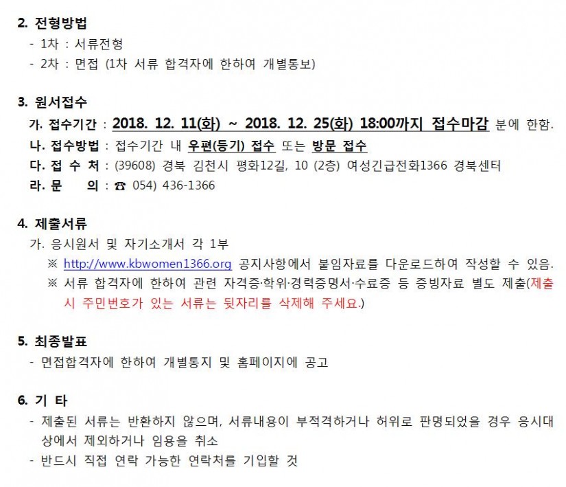 [직지사복지재단] 여성긴급전화1366 경북센터 현장상담원 채용 공고